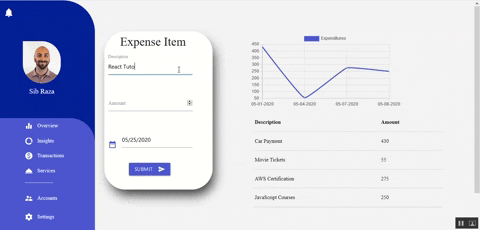 This is a full stack MERN app that allows users to track their expenses. Additionally, users can view their expense transactions in a table and line graph.